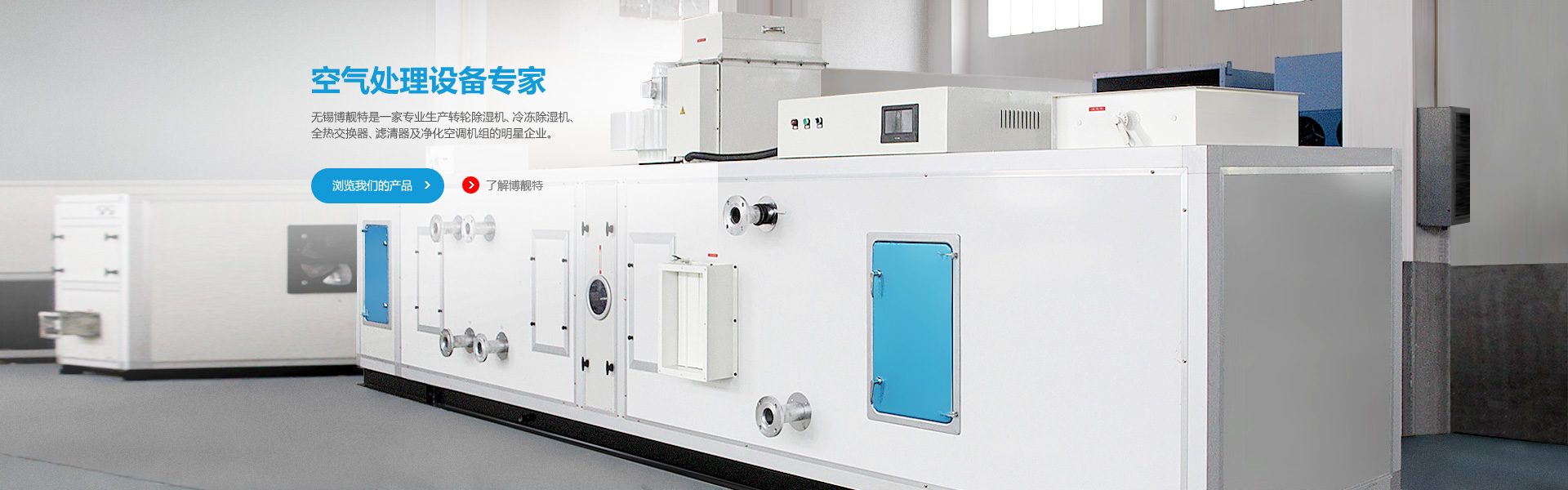 無錫博靚特空氣處理設備有限公司是一家專業(yè)生產(chǎn)轉(zhuǎn)輪除濕機、冷凍除濕機、恒溫恒濕機、全熱交換器、新風處理機及凈化空調(diào)機組的明星企業(yè)。 公司座落于中國長三角的中心城市——江蘇省無錫市。公司背鄰太湖,旁倚錫宜高速和…